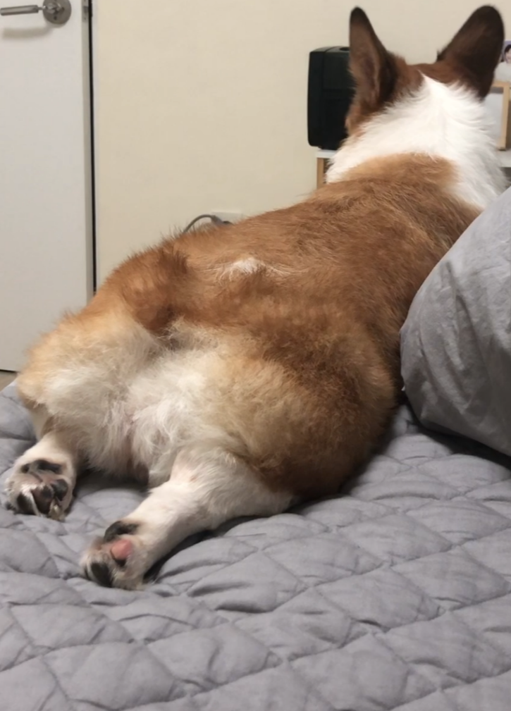 목욕하고 빵실빵실 돼지가 되어 누워있네요. 목욕 후 기분 좋은 로이, 쿨쿨 푹 잘 수 있겠어요.