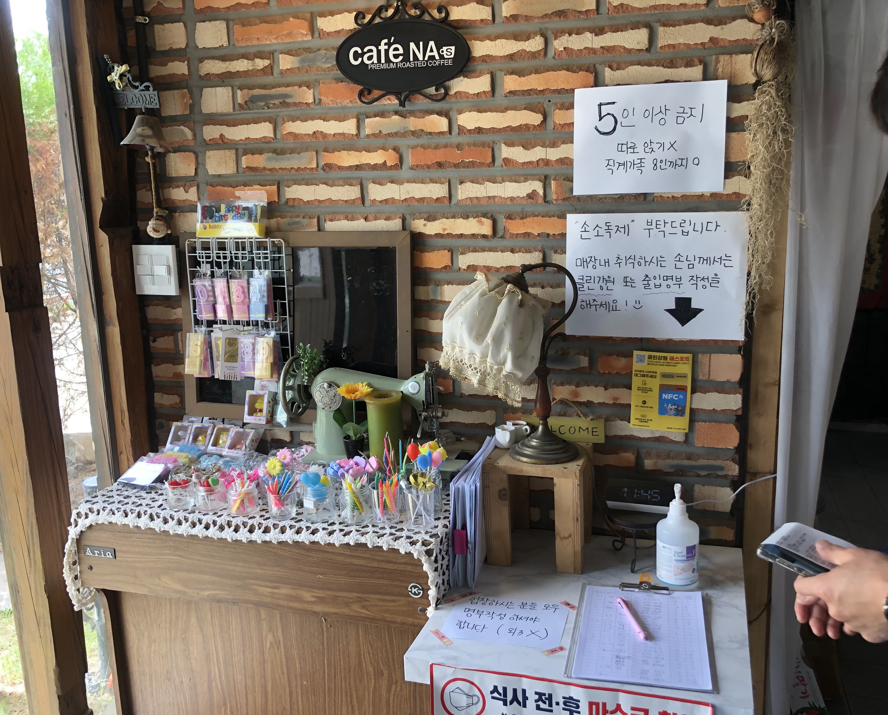 코로나 때문에 5인 이상 카페 이용은 어려워요.