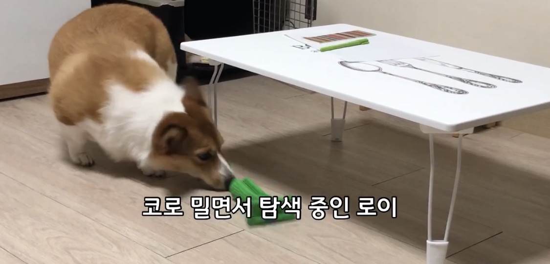 이제 본격적으로 로이가 가지고 놀면서 셀프 양치를 할 수 있게 해봤어요. 처음에는 강아지들이 장난감을 낯설어하고 셀프칫솔 장난감에 흥미를 갖지 않을 수도 있어요. 로이도 처음에 그랬답니다.
