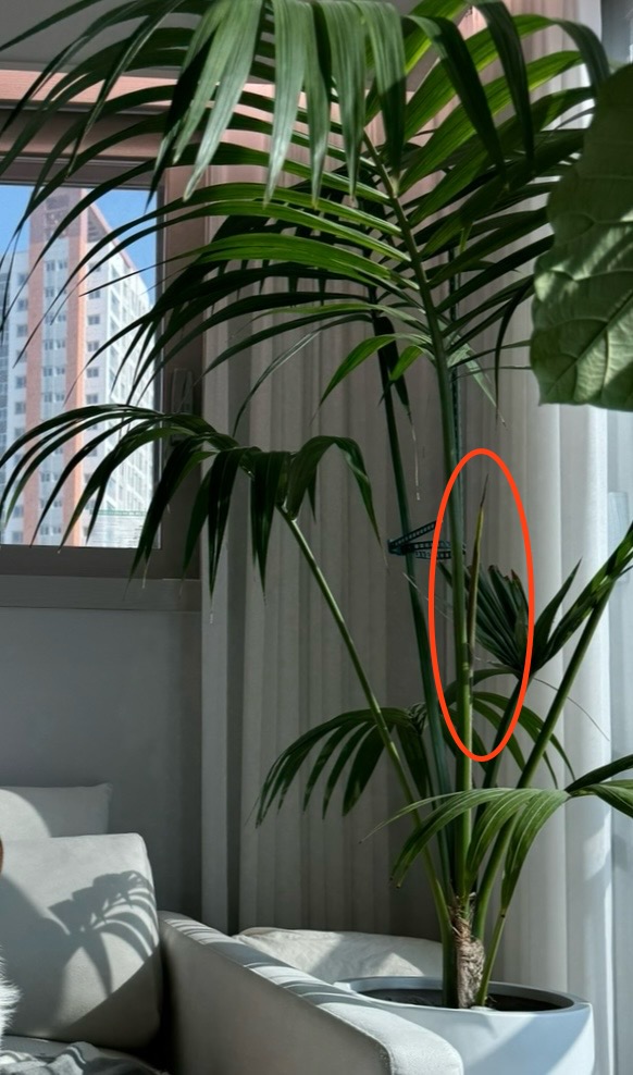 기존에 있던 야자 잎들은 잎사귀 끝이 전부 노랗게 탔는데,
