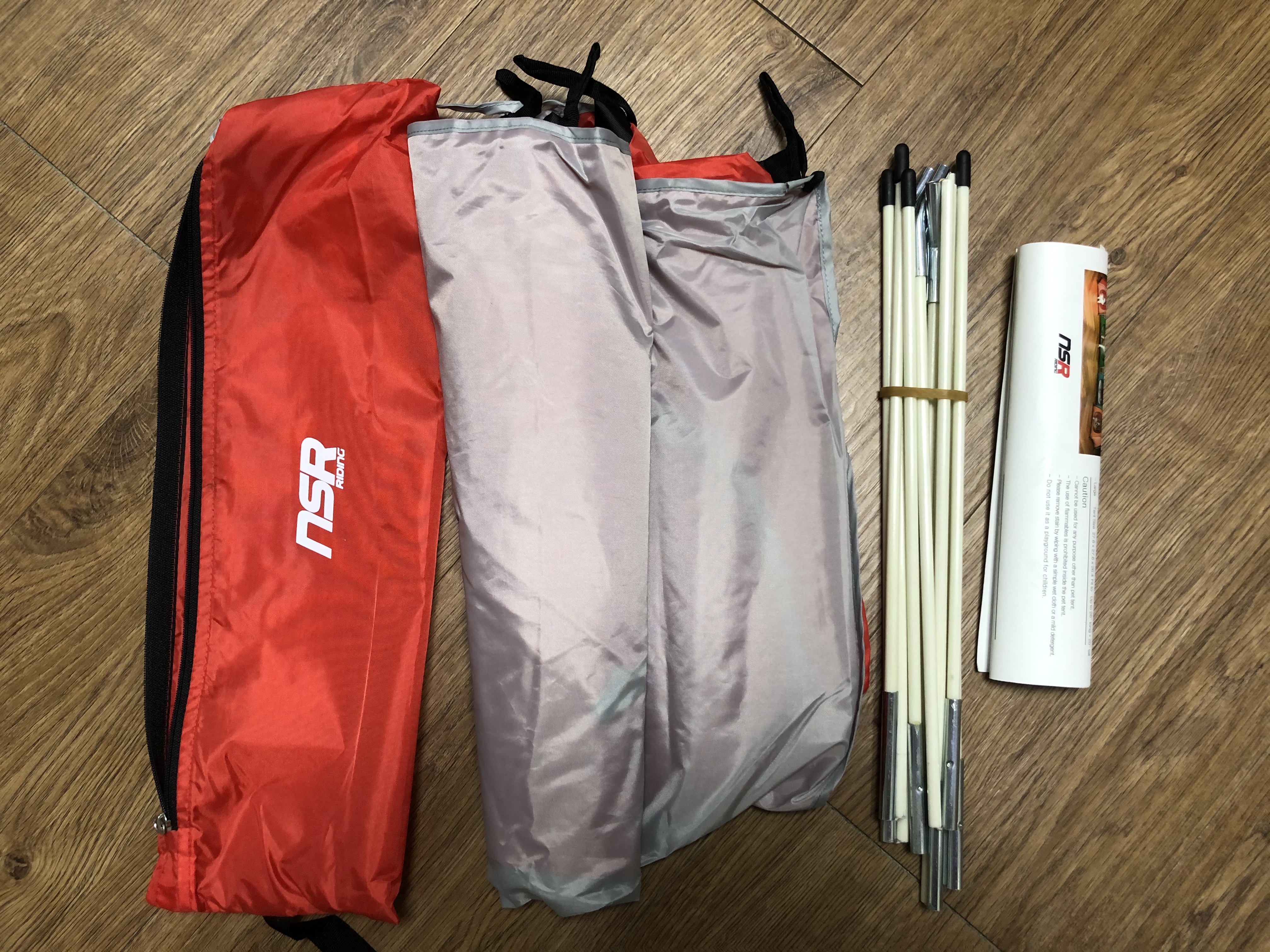 구성품으로는 모든 구성품을 담아 보관할 수 있는 파우치와, 텐트 그리고 폴대가 들어있습니다. 구성품만 봐서는 정말 저희가 쓰는 텐트와 똑같아서 놀라기도 했답니다. 마치 사람용 텐트를 작게 미니어쳐로 만들어 놓은 것 같았어요.