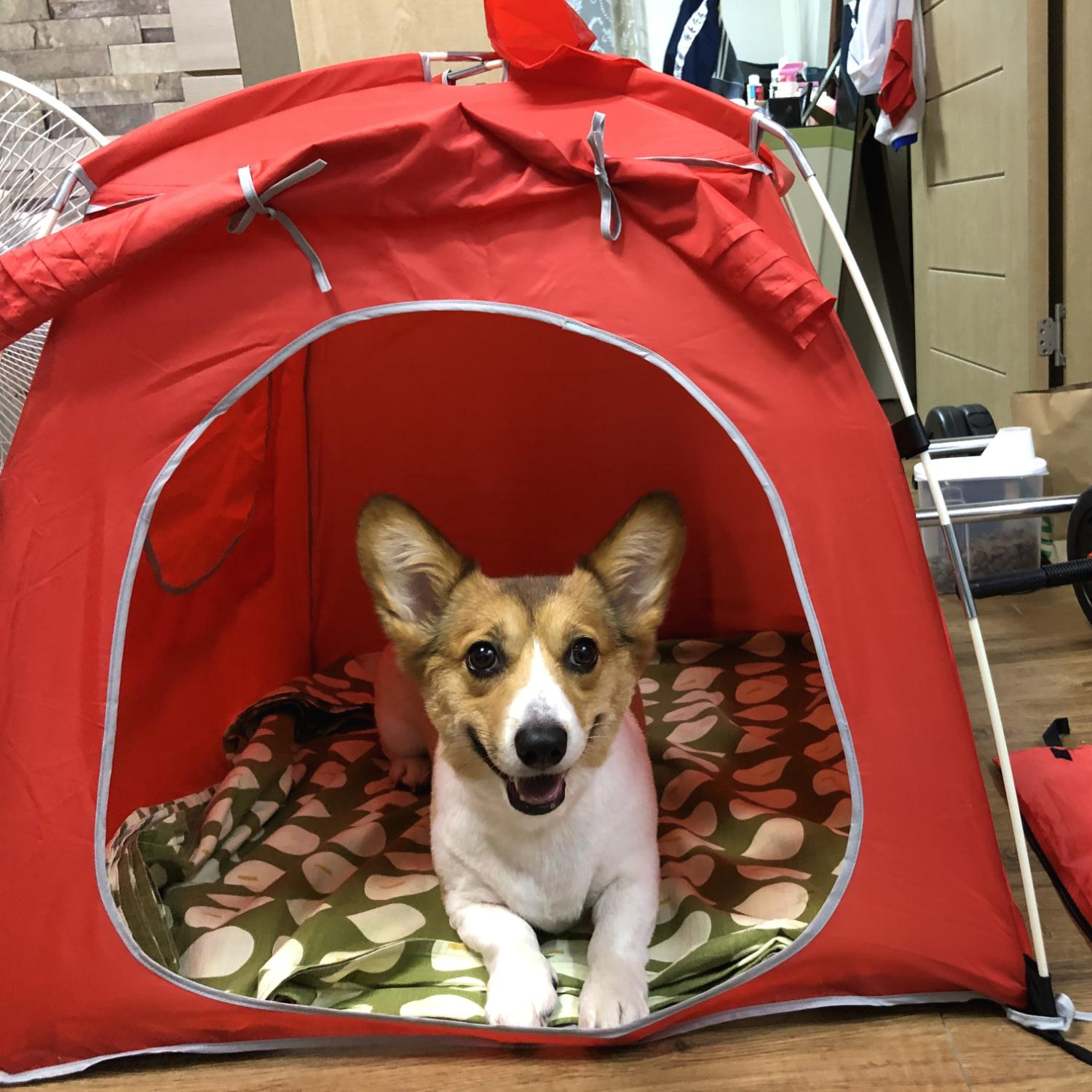 동거견 로이와 두번째 캠핑을 준비하면서, 반려동물 전용 아웃도어 용품에 관심이 많이 가더라구요. 그 중에 가장 신경써주고 싶은 부분은 바로 강아지의 잠자리 및 휴식공간이었습니다. 지난번 캠핑 때는 강아지 로이가, 야외라서 신은 났지만 집 처럼 자신만의 공간이 있는게 아닌 낯선 야외환경이었기 때문에 밤에 잠도 잘 못자고 방황하더라구요. 그래서 로이 전용 보금자리를 마련해 주었습니다.
