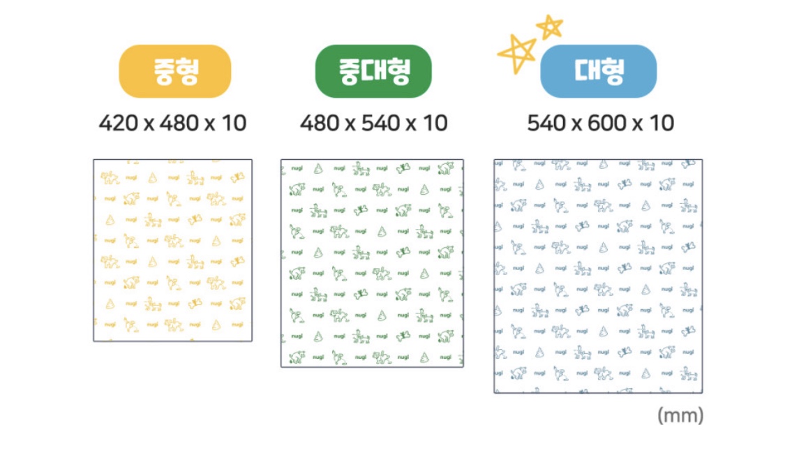 제가 구매한 누기패드는 대형 사이즈로 540 x 600 x 10 이라고 되어있네요.